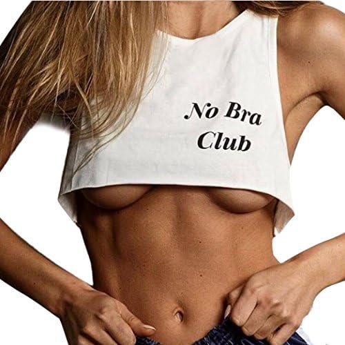 Smileq Women Sexy Crop Top No Bra Club Letter Print Vest Short Tank Tops Casual Sleeveless Blouse L White Amazon Co Uk Clothing